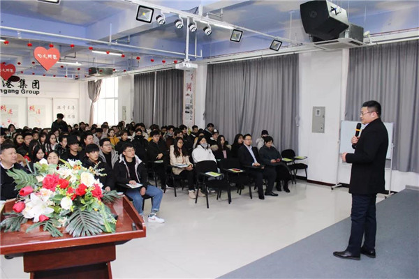 乾港集團(tuán)美博士環(huán)保總經(jīng)理常凱??偅瑸樵谧膸熒鷤兘庾x了大綠色環(huán)保家居、室內(nèi)污染物治理技術(shù)、方式方法及產(chǎn)品介紹等相關(guān)空凈治理知識(shí);秦皇島新型材料科技有限公司總經(jīng)理李勇劍李總則為在座師生帶來(lái)了綠色材料研發(fā)及生產(chǎn)使用工藝等內(nèi)墻環(huán)保壁材方面的知識(shí)。