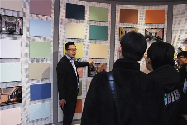 參觀完總部后,在解說(shuō)員的帶領(lǐng)下,河北環(huán)境工程學(xué)院一行人來(lái)到了我公司品牌體驗(yàn)展示中心。對(duì)于我司相關(guān)環(huán)保產(chǎn)品大家都還比較陌生,常凱常總、李勇劍李總分別對(duì)室內(nèi)污染物治理展廳、企業(yè)綠色裝飾材料展廳進(jìn)行了細(xì)致介紹,讓大家對(duì)凈化原理及環(huán)保材料等有了一個(gè)全新的認(rèn)識(shí)!