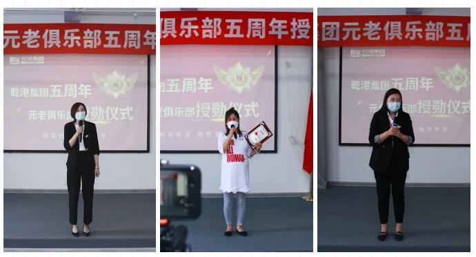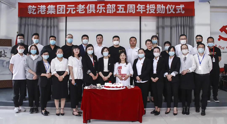 2020年5月28日,乾港集團元老俱樂部五周年授勛儀式隆重召開,乾港集團對3位工齡超過5年以上的老員工授予榮譽勛章,感謝元老們在乾港集團發(fā)展中做出的貢獻。